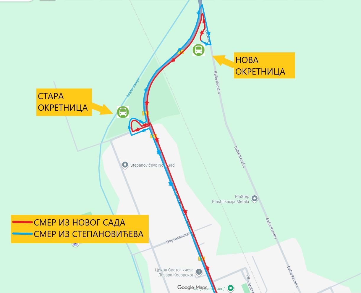 Nakon dolaska na staru okretnicu u Stepanovićevu autobusi saobraćaju preko