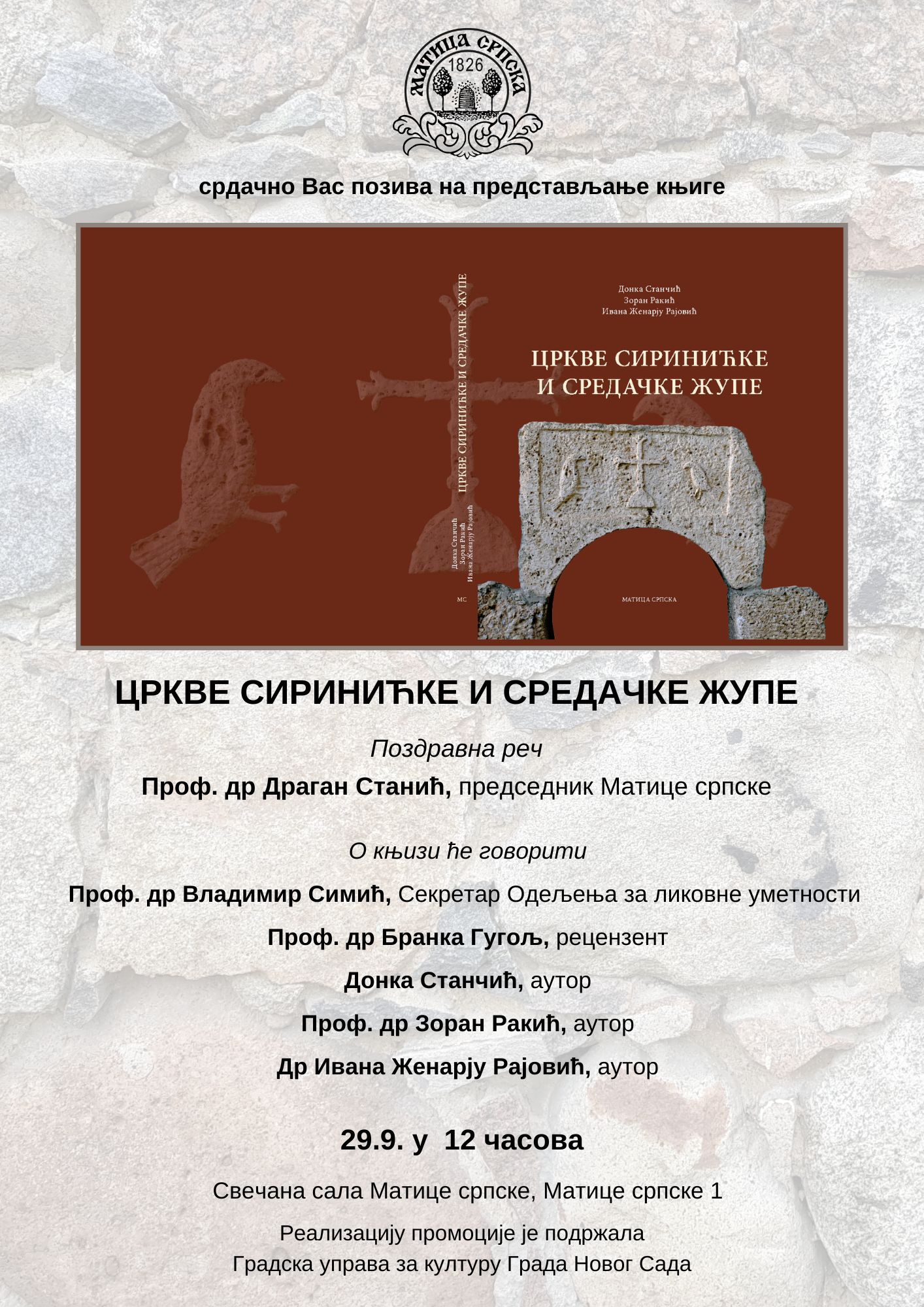 Novi Sad Matica srpska: Promocija knjige CRKVE SIRINIĆKE I SREDAČKE ŽUPE koja će se održati u ponedeljak, 29. septembra u 12 časova Administrator сеп 22, 2025 0 Podeli ovo