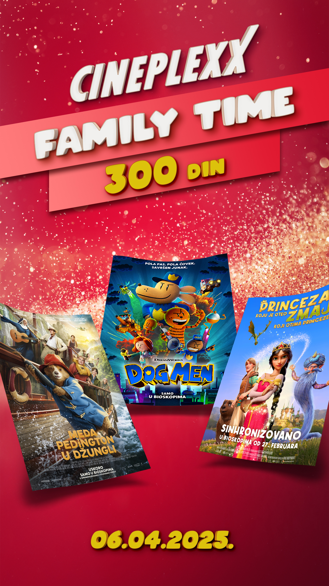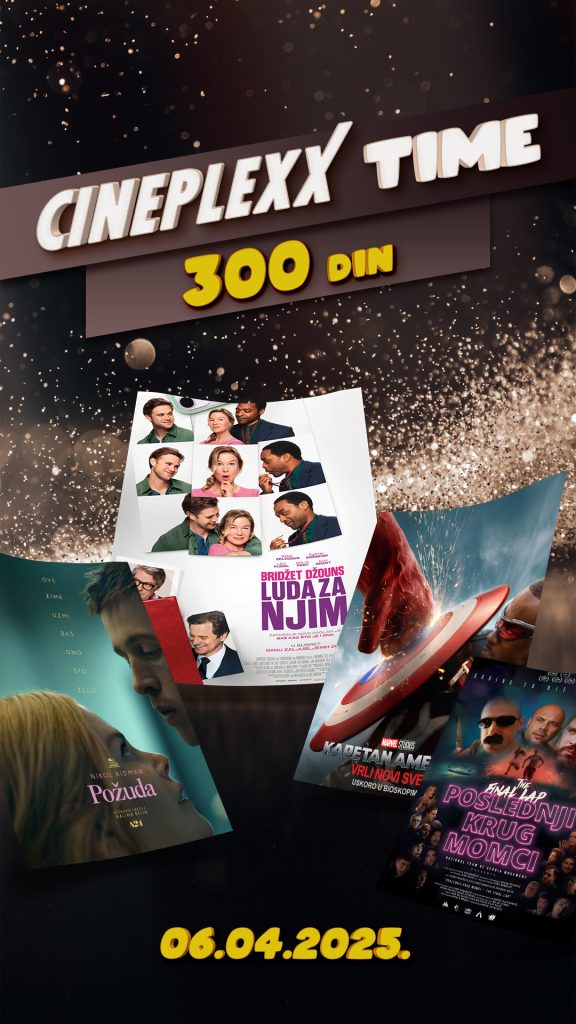 Svaka prva nedelja u mesecu je rezervisana za Cineplexx Time i Cineplexx Family Time kada odabrane filmove možete pogledati po ceni od 300 dinara! Cineplexx Time ove nedelje, 2. marta donosi sledeće filmove: Bridžet Džouns: Luda za njim, Kapetan Amerika: Vrli novi svet, Požuda i Poslednji krug momci, a Cineplexx Family Time donosi sledeće filmove po specijalnoj ceni: Princeza koju je oteo zmaj koji otima princeze, Dogmen i Meda Pedington u džungli.